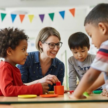 Our teachers offer a hands-on approach which helps children learn through play — no pressure, just fun! They provide a warm, encouraging environment where children feel safe to listen, repeat, and experiment with new sounds: children can build self-esteem and confidence.